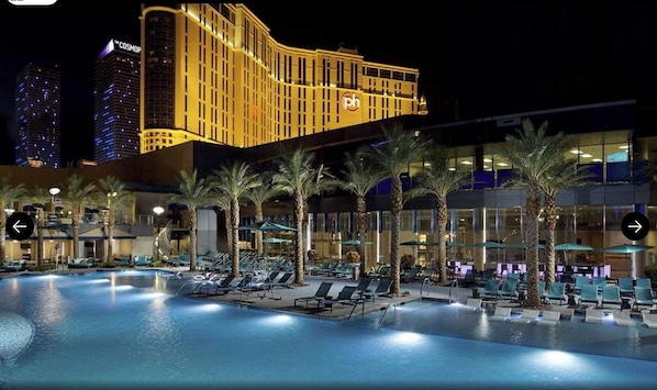 Located on the Formula 1 Trac, This luxury hotel is a dream. With No Resort Fees and Free self parking. The welcoming property offers a phenomenal bathroom with a jetted bathtub and bidet, perfect for unwinding after a day of exploring. With terrific amenities like WiFi and a fitness room, guests can stay connected and active during their stay. Feel free to reach out to us during your stay - we're happy to suggest local spots to check out. Some rooms have views of Sphere as well and Bellagio fountains, guaranteed floors 50-56. This one-bedroom, one-bathroom junior plus suite features a primary bedroom with king-size bed and bathroom with a standard whirlpool jet tub with shower. The unit also includes a living room and queen-size sofa bed, and a kitchenette with a microwave oven, coffee maker, toaster, small refrigerator and small dishwasher. In-suite amenities include a wall safe, iron, ironing board and hairdryer. Suites do not include an in-unit washer/dryer. All Plus units are located on floors 50-56. Proper ID and credit card needed for check in for incidentals and you get free parking (self parking) and discounted Valet parking available for a fee if you choose. Upscale luxury unit, images may not be the exact unit, subject to availability upon check in. Specific view requests may be submitted to your owner but no guarantee. We will do our best to fulfill your request.Personal greeter at the Elite check in line, will help with check in, and further guidance regarding the area and nearby amenities.