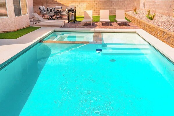 New Pool/Spa & Pool Table @ 6BR Refined Vegas Stay