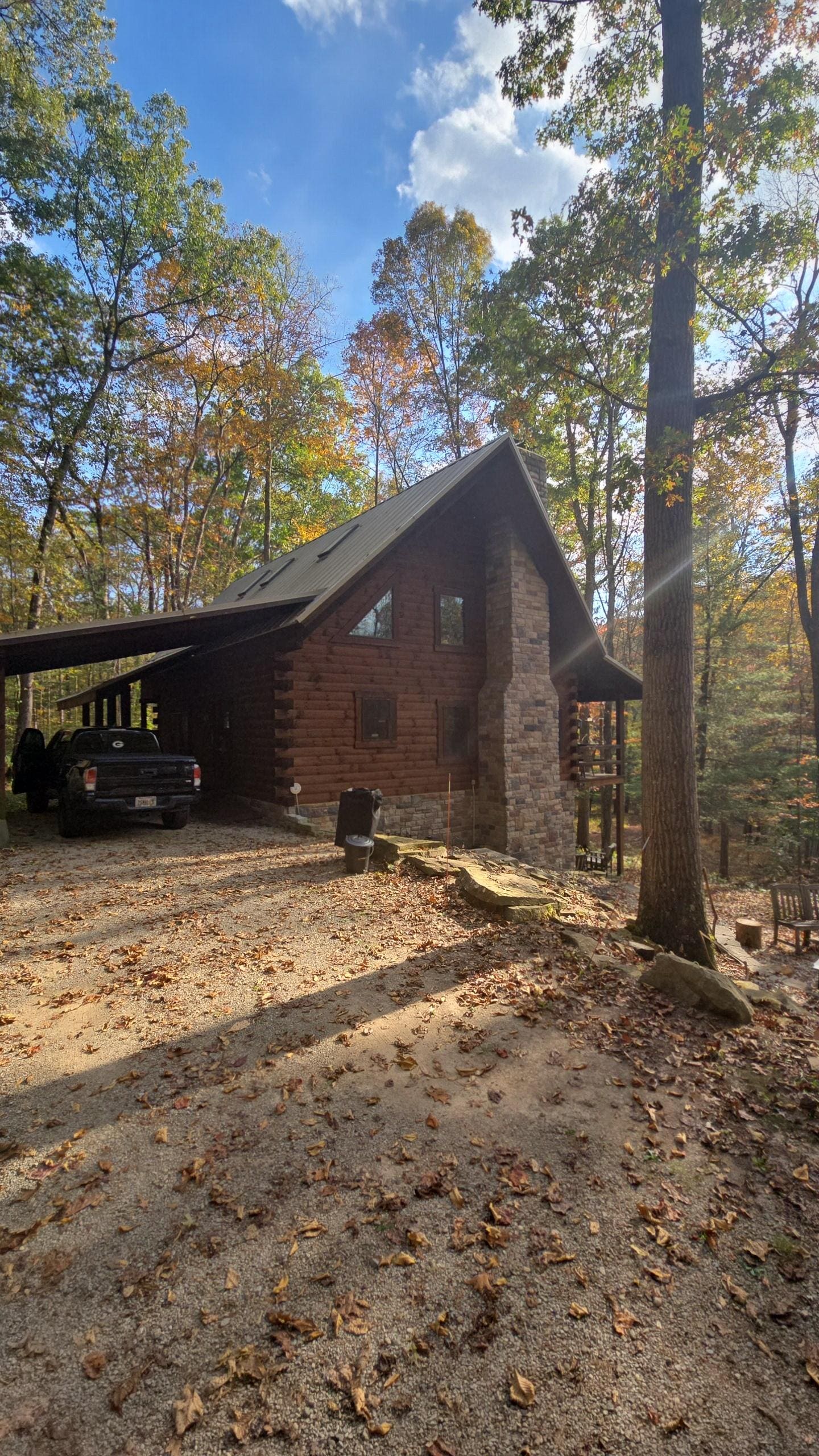 The house and property are beautiful! We stayed over Easter weekend and the trees were just beginning to leaf out. The house is very private and had great amenities. Our teens loved the games on site. It was easy to get to all of the Parks and the grocery store. It was fun to go watch Jack Pine at his glassblowing studio about a mile down the road and it was a quick drive to Old Man’s Cave Trail. We also easily went into Chillicothe (park side Creamery is great!)We’re already planning a return trip! Recommendations:arrive during daytime if possible, driveway has a short steep hill when you turn in and it’s a little difficult to see in the dark. Also no ATT cell service around the cabin for a few miles BUT the internet at the house was very good! Just make sure to load direction before you leave the house! :)