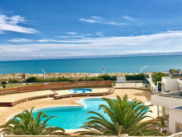 Wunderschönes Apartment mit Meerblick, Swimmingpool, WiFi, Tennis, Minigolf, privater Fahrradraum. Privatperson mietet eine T 2 plus Kabine plus Terrasse im zweiten Stock mit Aufzug.