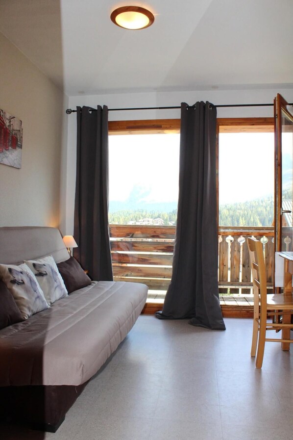 L'appartement dispose d'une jolie vue depuis le balcon. Propre et fonctionnel, il est plus adapté aux séjours courts n'excédant pas une semaine. Il est annoncé pour 6 personnes, mais à 4 personnes (2 adultes et 2 enfants), il est déjà bien plein. Nous n'aurions pas passé une semaine à 6 personnes... Bonne localisation dans la station.