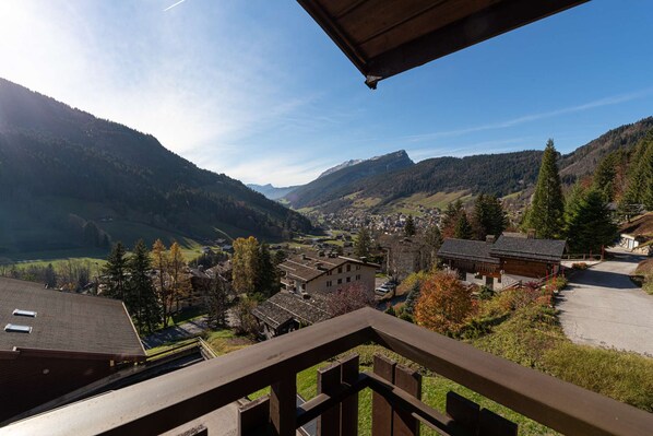 Appartement lumineux avec le nécessaire pour passer un bon séjour. Tres fonctionnel et propre. Terrasse avec magnifique vue sur la vallée et le village. Navette pour aller au télécabine très pratique. 2 Chambres mansardées où on ne peut pas tenir debout. Mais avec de bons matelas. Beaucoup d escaliers.