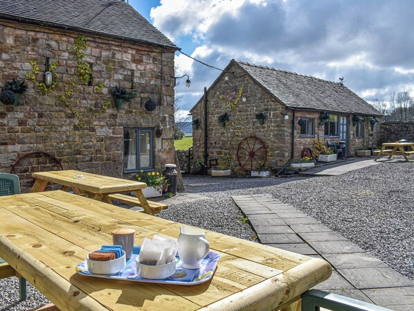 Bathroom: Bath, Toilet. Electric central heating, electricity, bed linen, towels and Wi-Fi included. Private parking for 3 cars. No smoking.. Broomshaw Farm Cottages is made up of three properties, Meadow Cottage, Stable Cottage and Swallow Cottage, located off the main road in a quiet and peaceful area. These cottages are perfect for a Peak District get-away. You are located close to neighbouring towns in Leek and Ashbourne, there are ample walks from your doorstep plus Alton Towers Theme Park is just 4 miles away. Meadow Cottage is the largest of the three with three bedrooms, made up with a double, a single and a family bedroom with double and single beds, and a family bathroom upstairs, downstairs there is a sitting room with electric wood burner effect fire, TV and dining table to sit all guests, plus a kitchen with all amenities you should require. Out of each window you have stunning views of the countryside. You are welcomed into Broomyshaw by a very friendly atmosphere and host.