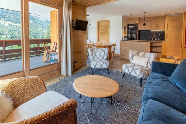 Cybèle 2 is a beautiful functional apartment that can accommodate 4 to 6 people. You will appreciate its location just above the resort center, a 5-minute walk from the tourist office and the slopes. The equipped kitchen opens onto the dining room, which is adjacent to the living room. The apartment has a bedroom with a double bed and another bedroom with bunk beds. Two bathrooms complete the apartment: one with a shower and the other with a bathtub. You will enjoy a beautiful view from the terrace and a small outdoor space.