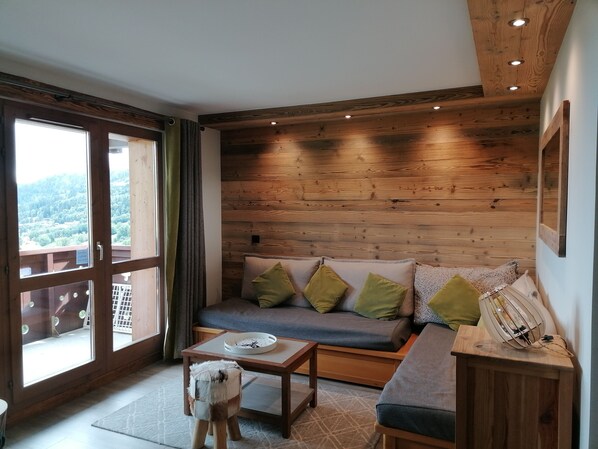 Renovated 3-room apartment, cosy mountain setting, at the foot of the slopes, magnificent valley view