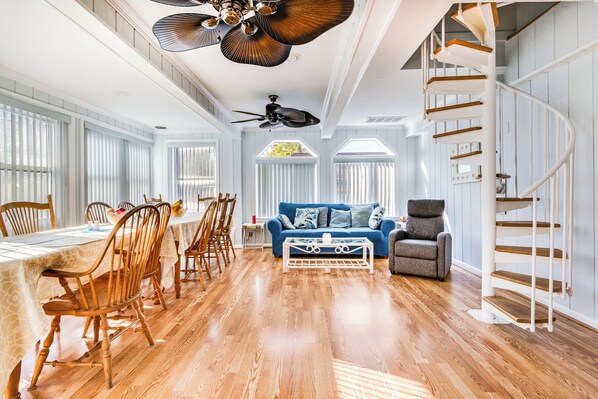 Gather in Style: An oversized dining room seats 12, while an additional table for 8 in the front room is perfect for meals or game nights.