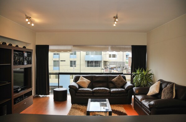 Die Wohnung "Sisley" befindet sich im Zentrum von Miraflores, der sichersten Gegend in Lima. An jeder Ecke gibt es Polizei und auf jeder Straße Überwachungskameras.
