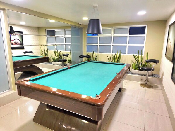 • Ein Fahrrad vor Ort, ein Billard- oder Pooltisch und Spiele