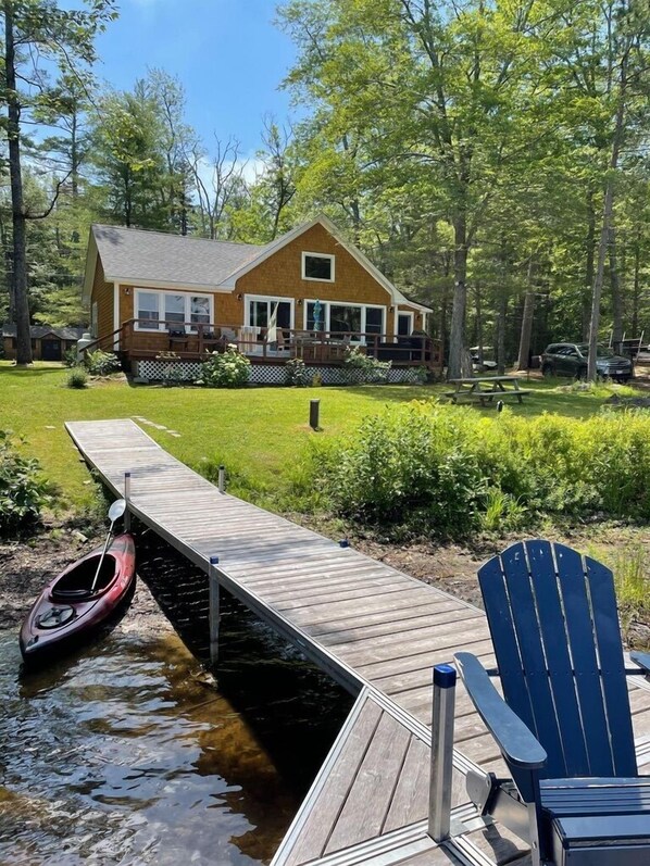 Dreamy waterfront cabin on Pitcher Pond in Midcoast Maine. Enjoy sunrises over the water, have dinner on the back deck, spot a bald eagle soaring overhead as you kayak the calm waters, or cozy up inside this comfortable, fully equipped, and updated home.