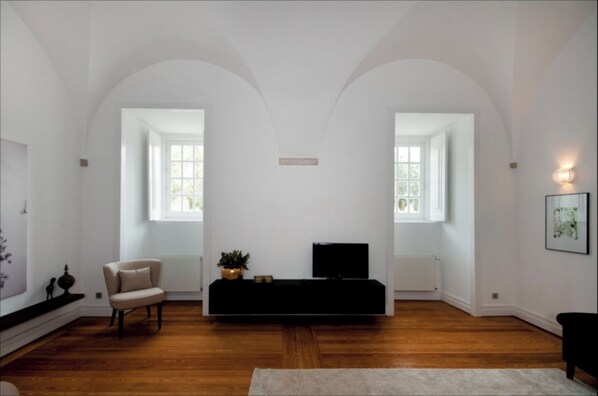 • Das Wohnzimmer Eingang hat eine ursprüngliche Gewölbedecke, und der Vorraum ist von Mauern umgeben und vor der Suite entfernt.