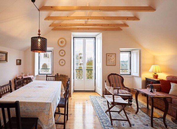 Die Dachwohnung für bis zu 4 Personen liegt direkt im historischen Zentrum von Sintra (UNESCO-Weltkulturerbe); GEGENÜBER DEM KÖNIGSPALAST. Die tolle Aussicht vom Wohnzimmer aus auf den Königspalast ist einzigartig. An klaren Tagen sieht man sogar zum Atlantik.