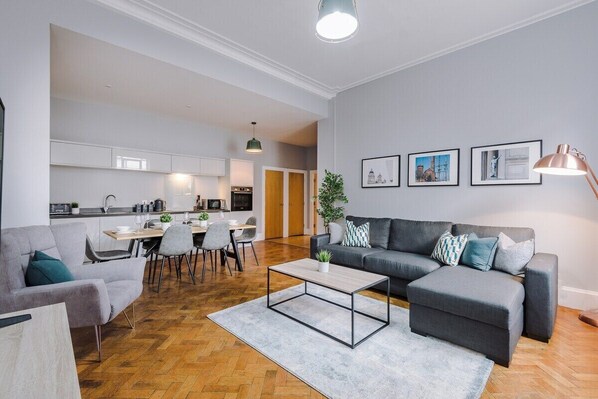 This beautiful apartment sleeps up to six guests with two comfortable double bedrooms & a state-of-the-art bathroom. The open plan lounge area has a super comfortable double sofa bed, smart TV & a modern kitchen that is equipped with all of the essentials to make you feel at home!