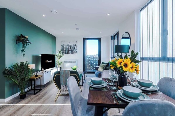 The apartment benefits from a large living space equipped with a 50-inch SMART TV with Netflix and plenty of space to sit down and relax. There is also a SMART TV in both bedrooms.