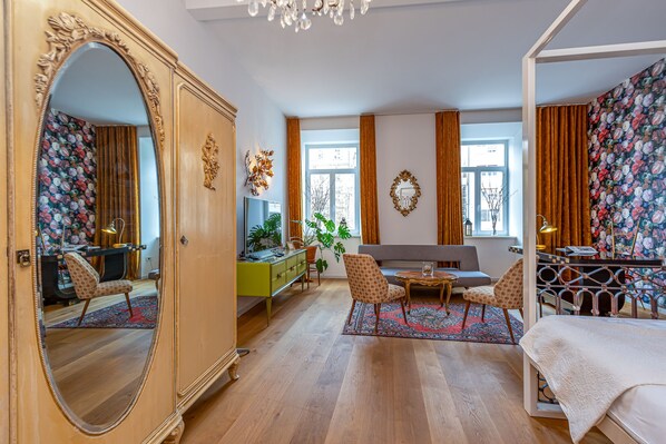 Genießen Sie diese stilvolle Unterkunft im Herzen der wunderschönen Stadt Ljubljana. Diese hübsche Wohnung für 4 Personen befindet sich im 1. Stock eines historischen Gebäudes mit Blick auf den Fluss Ljubljanica. Das einzigartige Interieur wurde von einem bekannten slowenischen Künstler gestaltet. Es ist die ideale Wahl für Freunde oder Familien, die diese wunderschöne Stadt erkunden möchten.