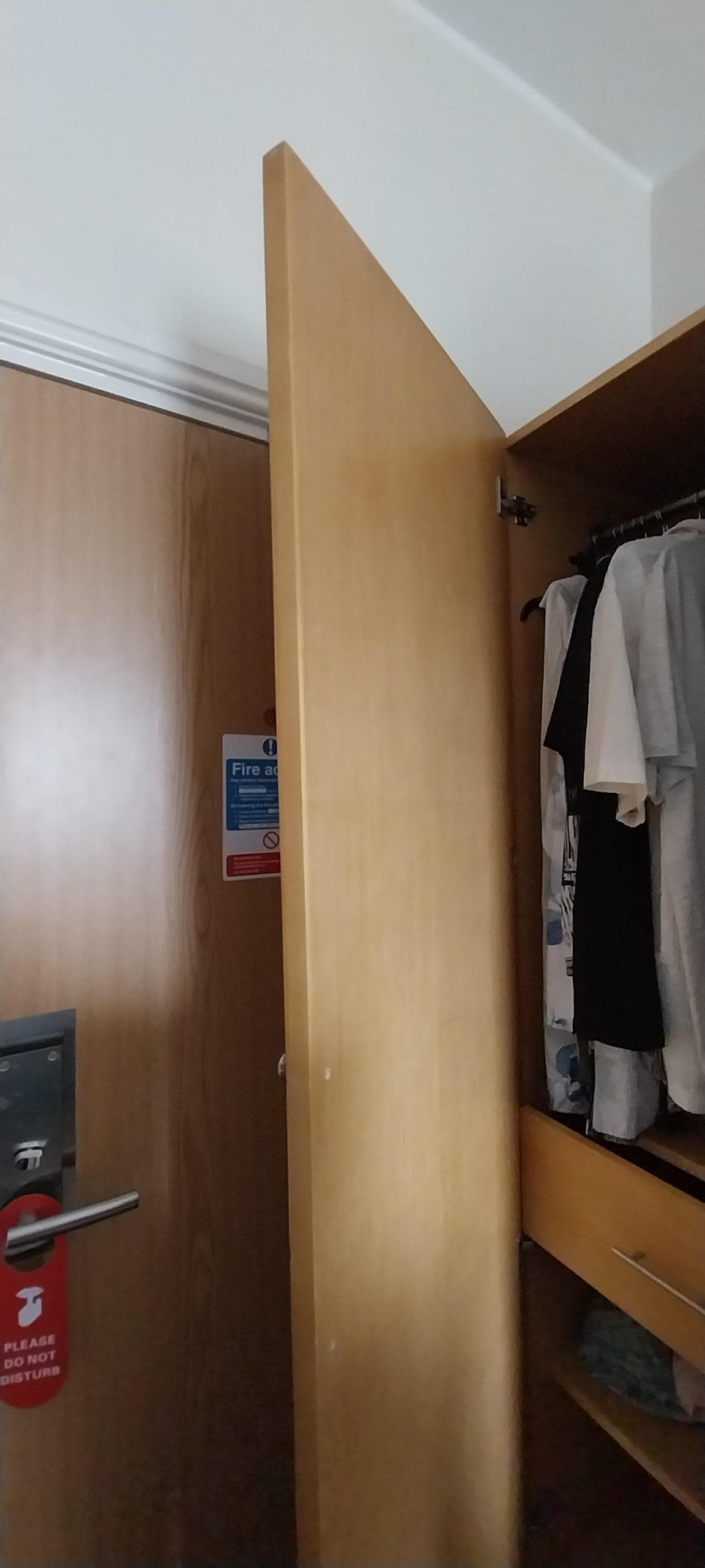 We found room 103 had a shower door which wouldn't close and had a note saying so.Furniture tired .chipped and wardrobe doors failing.Portable heater broken .Radiators off .Only controlled from reception thermostat.Pillow on bed thick with dust.Took pillow and heater to reception.towel rail hanging off wall.Otherall paintwork tired.Needs renovation. Dust in corners ,stains on stool/pillows.No wifi in rooms only in reception. Bathroom very cramp.Spare blankets would have been a good addition for room.