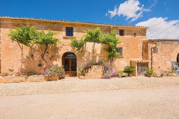 Sind Sie auf der Suche nach einem typischen Landhaus für die ganze Familie oder möchten Sie individuelle Ferien mit Freunden verbringen? Dann ist die Finca Soncaldes nahe Llucmajor genau die richtige Wahl für Sie. Das Haus blickt auf eine Geschichte von mehr als 500 Jahren zurück und überzeugt durch Gemütlichkeit und die rustikale Atmosphäre. Auf dem Grundstück befindet sich das Haupthaus mit 3 Schlafzimmern, alle mit Badezimmer en suite, einem geräumigen Wohnzimmer sowie einer Küche mit Essecke. Zentralheizung gibt es im gesamten Haupthaus. Die Küche ist komplett ausgestattet und bietet Ihnen alle wichtigen Küchenutensilien und Haushaltsgeräte. Wie man auf den Fotos sehen kann, sind die Ausstattung sowie die Möbel der Finca neuwertig, ohne jedoch den ursprünglichen Charme zu verlieren. Viele Dekorationsgegenstände von früher wurden liebevoll restauriert und runden das Gesamtbild des Hauses perfekt ab. Im Haupthaus befindet sich auch ein alter Weinkeller, welcher schon seit über 200 Jahren benutzt wird. Gegenüber des Haupthauses befindet sich ein 2stöckiges Nebengebäude. Es empfängt Sie ein freundlicher Wohn- Essbereich im Erdgeschoss, desweiteren gibt es eine komplette Küche, Badezimmer sowie ein offenes Schlafzimmer mit zwei Einzelbetten und Kleiderschrank in der 1. Etage. Ein Kamin komplettieren den Komfort, es gibt jedoch keine Zentralheizung. Da alle Zimmer offen sind, gibt es im Sommer kein Problem mit der Hitze und die kühle Luft kommt überall hin. Außerdem hält sich die Temperatur dank der Steinfassade sehr gut. Alle 4 Schlafzimmer verfügen über eine Klimaanlage. Der Außenbereich besteht aus mehreren Terrassen und dem Poolbereich. Der Salzwasserpool ist 8 m x 4 m gross. Es sind Gartenmöbel sowie Sonnenliegen vorhanden. Wie man auf den Fotos sehen kann, sind eine weitläufige Fläche mit Kieselsteinen und ein Naturgarten mit einheimischen Bäumen und Sträuchern vorhanden. Hier können sich die Kinder so richtig austoben während die Erwachsenen den herrlichen Blick auf die Landschaft genießen. In Soncaldes finden Sie nicht nur alle Annehmlichkeiten für Ihren Urlaub sondern mieten auch ein kleines Stückchen Geschichte. Die Finca überzeugt vor allem durch ihren Charme, die zahlreichen gemütlichen Ecken zum Ausruhen und Verweilen sowie den privaten Pool, wo man wohltuende Abkühlung findet. In weniger als 30 Minuten mit dem Auto erreichen Sie außerdem die Hauptstadt Palma, welche das ganze Jahr über wegen ihrer zahlreichen Sehenswürdigkeiten, Veranstaltungen und Einkaufsmöglichkeiten besucht wird. Alle Strandliebhaber erreichen den Karibikstrand Es Trenc, den weitläufigen Sandstrand Sa Rapita oder die wunderschönen Buchten Cala Pi und Cala Blava in ca. 30 Minuten Autofahrt. In wenigen Minuten mit dem Auto erreichen Sie außerdem den Ort Llucmajor, wo Sie Wochenmärkte, Geschäfte, Bars, Restaurants sowie Supermärkte finden. Hinweis: Diese Unterkunft richtet sich an Familien und Gäste über 25 Jahre, die einen ruhigen Aufenthalt suchen. Buchungen für Partys oder Feiern werden nicht akzeptiert. Eine Kopie des Ausweisdokuments aller Gäste ist erforderlich, um die Reservierung zu bestätigen. Eventuelle Nebenkosten müssen beim Anbieter nachgefragt werden. Haustiere sind verboten. Partys oder ähnliche Veranstaltungen sind nicht gestattet. Es gibt Freiluftparkplätze für 4 Autos. Entfernungen Strand: 12 km - Cala pi Flughafen: 15 km - Palma Golfplatz: 17 km - Son Antem Ortsmitte: 1.5 km - Llucmajor Bahnhof: 20 km - Palma Bushaltestelle: 1.5 km - Llucmajor Fähre: 20 km - Palma Krankenhaus: 18.5 km - Son Llatzer Touristen Lizenz: ETV/3535Einheitsregister: ESFCTU0000070180000403250000000000000000000000ET35359Bei der Anreise muss die Ecotasa (Touristensteuer der Balearen) bar bezahlt werden. Der zu zahlende Betrag beträgt zwischen 0.55€ pro Nacht und Gast in der Nebensaison und 2.2€ pro Nacht und Gast in der Hochsaison. Ab dem 9. Tag reduziert sich die Steuer um die Hälfte. Personen unter 16 Jahren sind davon ausgenommen.Die Kaution ist bei Ankuuft direkt an den Eigentümer zu übergeben.