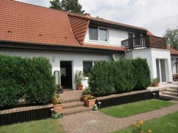 Über eine Außenterrasse erhalten Sie Zugang zu Ihrem Quartier. Auf der Terrasse steht Ihnen und den Gästen einer zweiten, seperaten Ferienwohnung je eine Sitzgruppe zur Verfügung.