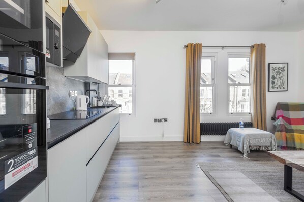 Charming two-bedroom apartment located near Notting Hill, Portobello Market, and Little Venice. The apartment has been newly refurbished and features ample natural light, a fully equipped kitchen, and two full bathrooms, including an ensuite in the master bedroom. It also includes a living room, a dining table, a Smart TV, free Wi-Fi, fresh linens and towels, and complimentary toiletries. Conveniently situated close to museums and tourist attractions, with excellent transport links.