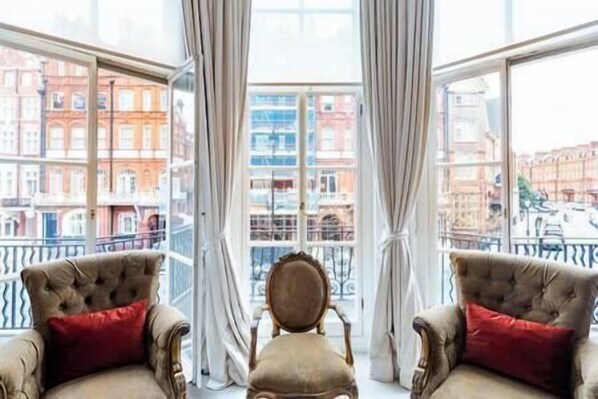 This luxurious two-bedroom apartment can comfortably sleep up to 4 people. There are two king size beds and one living room as well as two bathrooms and a balcony. The apartment is ideally located on Pont Street in Knightsbridge. This apartment has been furnished to the highest specification and style, with luxury furniture and interiors. The apartment is located on the first floor and the entrance level is located on the ground floor.