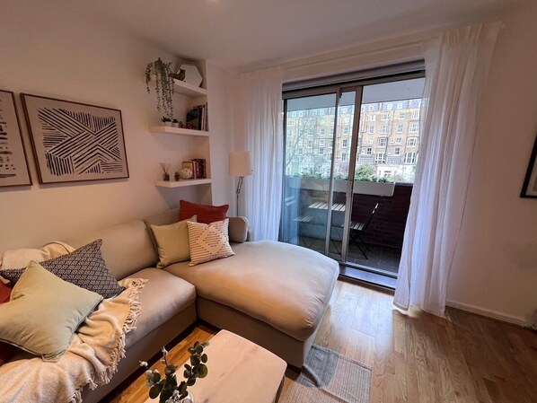 Living Space: The inviting lounge serves as a versatile space for relaxation and convenience. Sink into the comfort of the L-shaped sofa as you unwind after a fun day exploring London. If you're in need of extra sleeping space, you'll find that the sofa conveniently transforms into a double bed, making it perfect for accommodating additional guests!