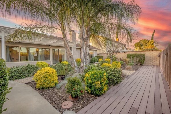 Step outside and you'll find a nice seating area with a barbecue and perfect for enjoying the beautiful California weather. The front and backyard are filled with gorgeous succulents and landscaping, providing a peaceful and serene environment for you to relax and unwind.
