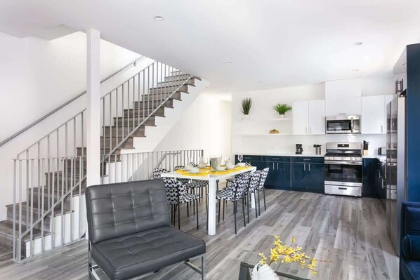Settle into this modern 4-bedroom townhome designed for comfort and convenience in the heart of LA. Perfect for families, it features plush new beds, fresh mattresses, and stylish furniture. Cook with ease in the fully equipped kitchen, stream your favorites on HDTVs with Netflix, and connect instantly with fast WiFi. Central air keeps every room cool, while free parking adds extra convenience. With professional cleaning and a safe location, this home offers privacy and style close to top attractions.