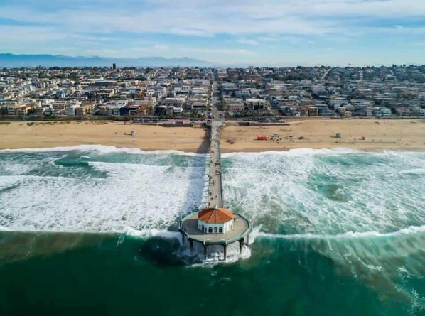 Dieses Ferienhaus liegt am Strand und ist dank der hervorragenden Lage (Sand Section) zu Fuß gerade mal 5 Minuten entfernt von: Manhattan Beach und El Segundo Beach. Ebenfalls nur bis zu 3 km entfernt: Strand von Dockweiler State und Manhattan Beach Pier.