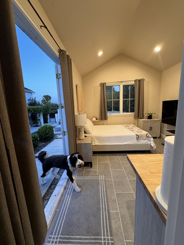 Large studio with a small kitchenette and a private restroom that overlooks the backyard, separated from the house with a private entrance. Sits next to an infinity pool and a vegetable garden. Super Zen and tranquil. Everything is brand new in the unit and smells clean and fresh.