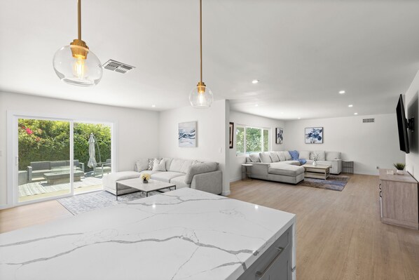 Located in Los Angeles, this welcoming house boasts 5 bedrooms - 2 with king beds and 3 with queen beds. With 3 bathrooms equipped with showers and hair dryers, guests will find their stay here to be tremendous. Our place is equipped for both long or short stays to make your holiday one to remember. Bright open layout, modern kitchen with quartz counters and stainless steel appliances. Spacious bedrooms, updated baths, and stylish finishes throughout. Enjoy a large backyard perfect for entertaining. Prime location near parks, schools, and shopping. Move-in ready!