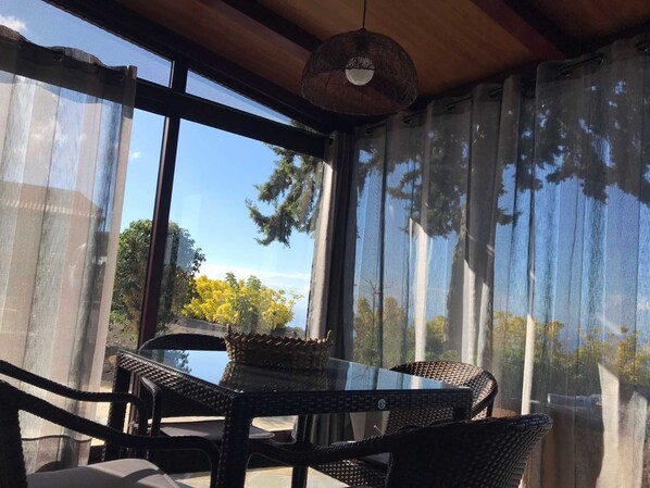 Dem Haus vorgelagert ist eine Art Wintergarten mit ca. 15qm, schön möbliert und das ganze Jahr mit angenehmen Temperaturen.