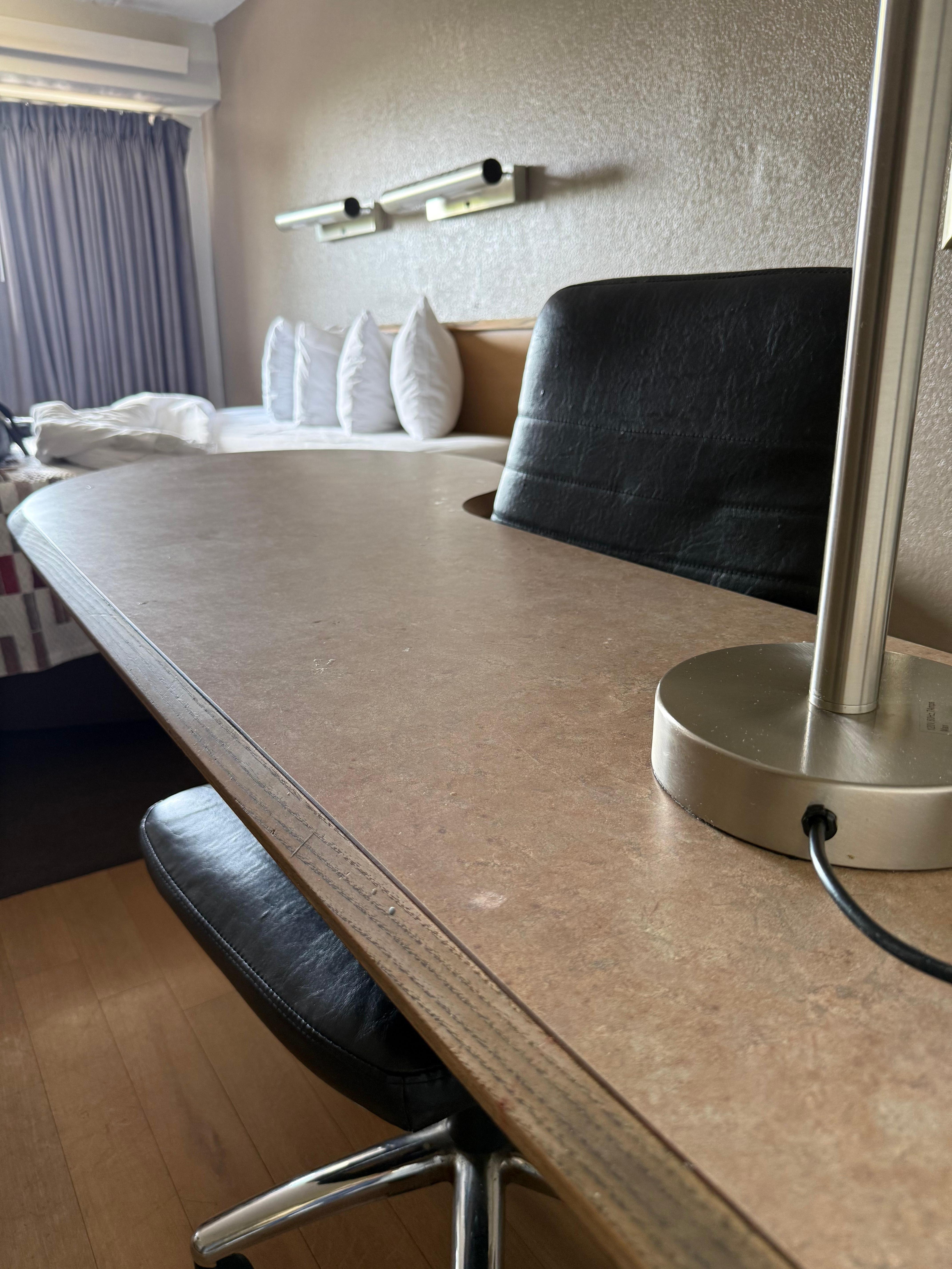 Nothing felt safe about this place. Don’t stay with a child of any age. Homeless and people clearly on drugs living in the elevator and all around the parking lot. I missed that there was no refrigerator in the room. Super outdated no working outlets. Unfortunately we only had 6 hours to eat dinner/sleep and get back on the road or we would’ve left. Hair on towel when unfolded, stain on sheet. Hot water and water pressure for the shower we great though. People puking in the parking lot in the early morning as we left with car alarms going off.