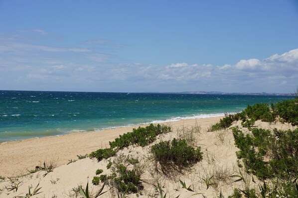 Von der Dachterrasse aus kann man das Meer, den Strand und die umliegenden Kiefernwälder sehen. Die Terrasse verfügt über einen Tisch und zwei Stühle, um die Sonnenuntergänge zu genießen.