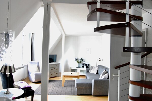Bei der Einrichtung der Maisonette wurde Altes mit Modernem kombiniert.