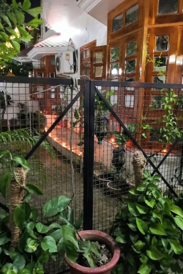 Treten Sie hinaus auf die geräumige 40' x 14' große Terrasse und genießen Sie die Ruhe Ihres privaten Rückzugsortes im Freien. Es ist der perfekte Ort, um morgens eine Tasse Tee zu trinken oder nach einem Tag der Erkundung von Lucknow zu entspannen. Es gibt zwar keine Parkplätze vor Ort, aber auf der 12 Meter breiten Straße vor dem Haus, auf der Fahrzeuge sicher geparkt werden können, ist ausreichend Platz vorhanden - auf Risiko der Eigentümer.