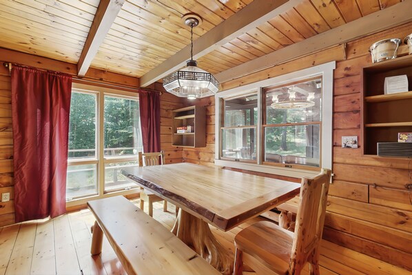 Just a short distance from Ogontz Lake, this classic, three-bedroom wood cabin is ideal for a relaxing vacation with the people you love! You can spread out to enjoy two levels of comfort and convenience that include a foosball table, board games, an expansive deck, and even a firepit for those toasted s'mores and campfire stories. Inside, you'll find a rustic and comfy living space dressed in knotty wood and lots of natural light. Full kitchen to prepare your favorite meals to serve over the handsome table with seating for six. Of course, there's nothing like an alfresco experience, so be sure to take a few meals outside on the screened porch or out on the deck surrounded by the lush green trees. You can enjoy an evening of board games with the kids before tucking into one of the home's three well-appointed bedrooms to get a luxurious sleep. In the morning, the baseboard heat will keep your feet nice and warm while you wake up to the toasty aromas of freshly brewed coffee and a bright new day!