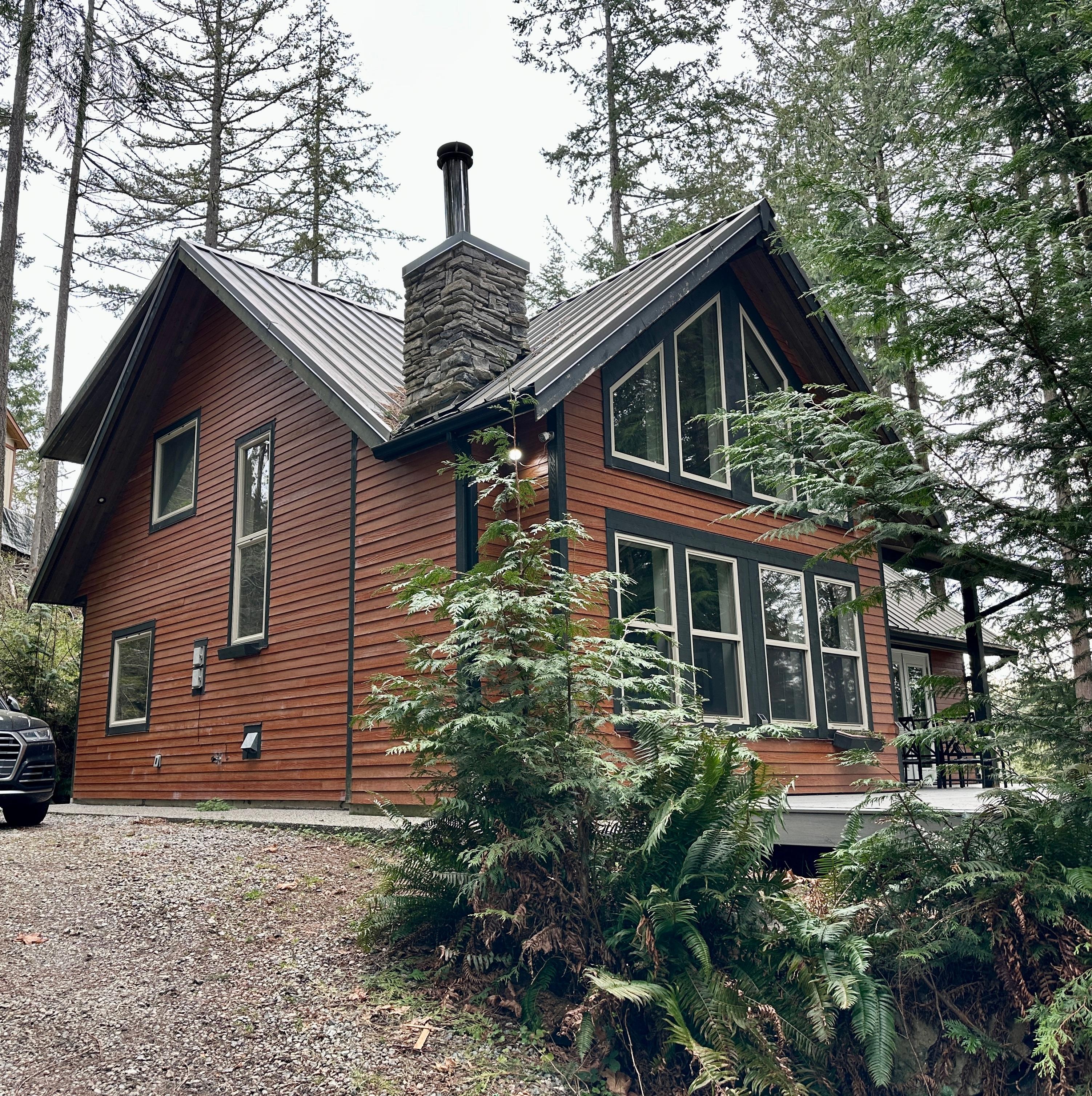 Eine von der Westküste inspirierte private Hütte auf über einem halben Morgen wunderschön bewaldetem Land, das an einen Provinzpark grenzt.