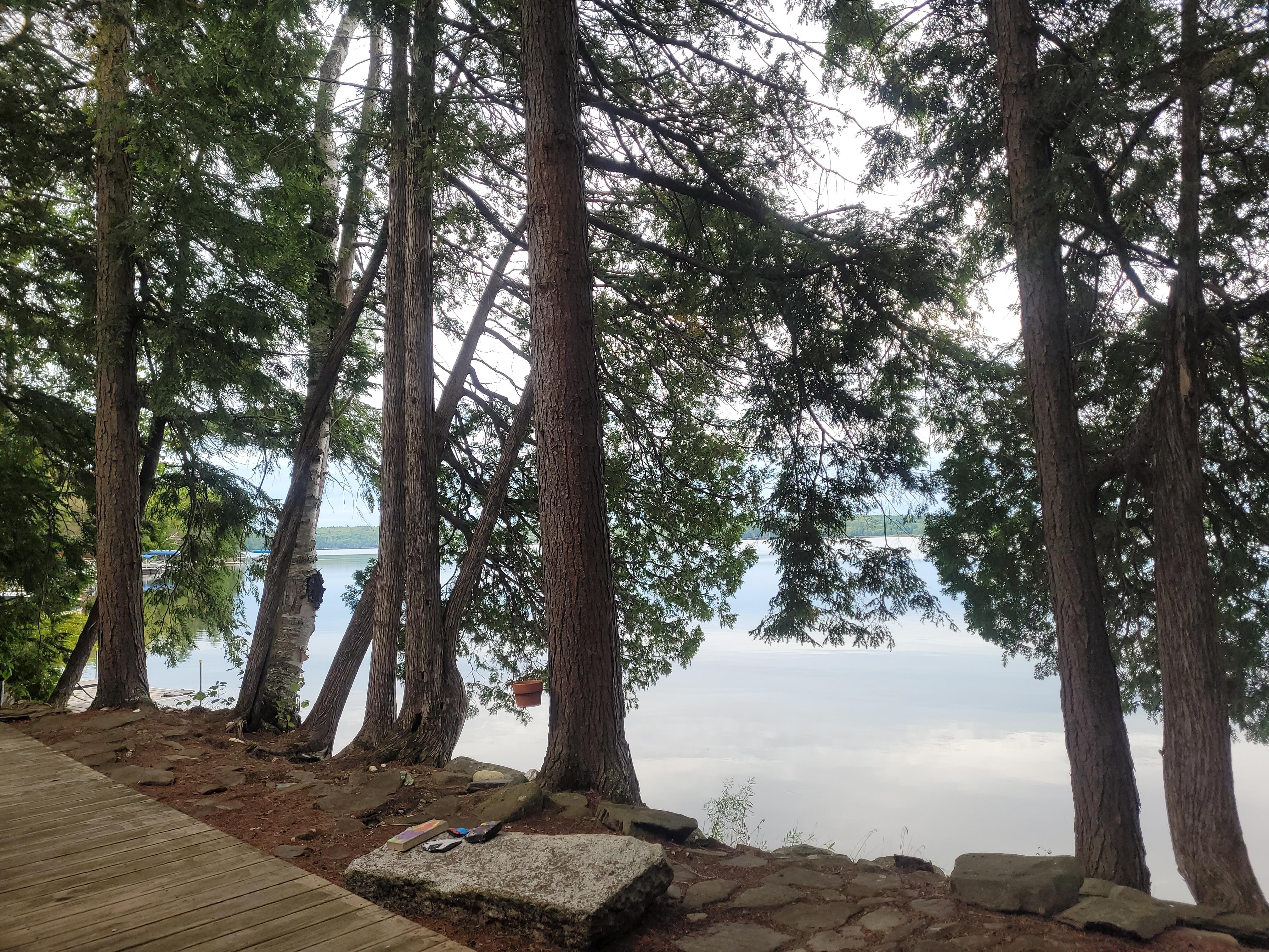 WOHNEN IM FREIEN: 220 Fuß private Seepromenade, Boots- / Schwimmsteg, 2 Morgen bewaldetes Land, 2 Kajaks, Feuerstelle, umlaufendes Deck, Baumschaukel, Hängematte, Kinderrutsche und Baumhaus, 6-sitziger Esstisch, gepolstertes Korbmöbel-Set Geräumiges Zelt mit abgeschirmtem Wohnbereich