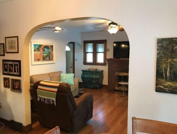 This furnished home is a cape cod with 1 bedroom on the main floor and a huge bedroom suite in the upper level. The lower level is a separate rental with a private entrance. Wood floors and trim make a warm welcoming atmosphere. The laundry room is in the Lower Level and shared with the Lower Level tenant. The driveway is also shared. The landlord uses the garage and yard shed. There is a huge backyard with turkey and deer visitors. This home is on a major street so you are close to many stores.