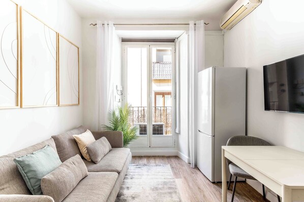 Descubre el encanto de vivir en el corazón de Madrid con este sofisticado apartamento situado en el vibrante barrio de Chueca, justo al lado del emblemático Mercado de San Antón. Este elegante refugio urbano cuenta con una luminosa habitación con cama doble, perfecta para descansar tras explorar la ciudad. La cocina está completamente equipada para que prepares tus platos favoritos, y el baño moderno ofrece comodidad y estilo.