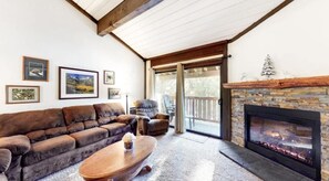 This cozy 2 Bedroom/ Loft / 2 Full bathroom condominium is located in the Grand building 50 yards from Eagle Lodge. This spacious condo offers all the conveniences and premium location, giving the perfect base for your family Mountain getaway. This cozy well kept condo sleeps up to 8 and has lots of natural light. The condo has a fully equipped kitchen a dining area for 6 plus an additional 3 at the bar, and is fully stocked with everything you need to prepare meals. The living room offers a cozy gas fireplace, comfortable living area with balcony and a large flatscreen Smart TV with cable. The master bedroom on the upper level has a Queen bed and adjacent full bathroom. The loft, also on the upper level, features 2 Bunk beds (4 Twin beds). The final bedroom on the main living level features a King bed and full bathroom, accessed from the hall. This unit offers complimentary Internet access. The complex offers underground parking (garage clearance 6' 9") with one designated parking spot...so no shoveling required! Common area features a Jacuzzi, sauna, weight room, laundry facilities, tennis court and pool (Summer only). Located on the green shuttle line, it is walking distance to the lifts at Eagle Lodge and easy access to the town loop multi-use path network, and a short drive or shuttle ride into town where there is groceries, coffee, retail, restaurants, movie theater and more. Guests will be provided two parking passes, one for the designated spot and one for the guest parking on a first come first served basis. (TOT Certificate #5856) TOML-CPAN-10943