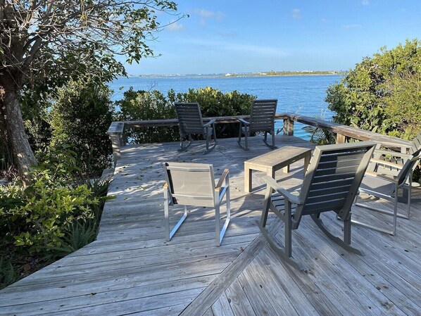 LookOut Ridge perches on one of the highest points on the island. From there you enjoy wonderful breezes and incredibly gorgeous views of the Sea of Abaco in front and the Eastern Harbour behind. The Sea of Abaco side has its own swim platform with hand hewn steps to the water. On the Eastern Harbour side is a private dock. The property is accessed only by boat, ensuring privacy and quiet. Two kayaks are available at the cottage for exploration, beach fun, or visiting the Settlement. Motor boats are available for rent in Marsh Harbour or on MOW.