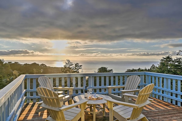 Set above Irish Beach with stunning ocean views, this 2-bedroom, 2-bath vacation rental provides the perfect coastal getaway! Spend your days lounging on nearby beaches, exploring Navarro River Redwoods State Park, or visiting Point Arena Lighthouse. At the end of the day, watch the sunset over the water from the spacious deck and soak in the private hot tub. Experience the best of Northern California from 'Pacific Coast House.'