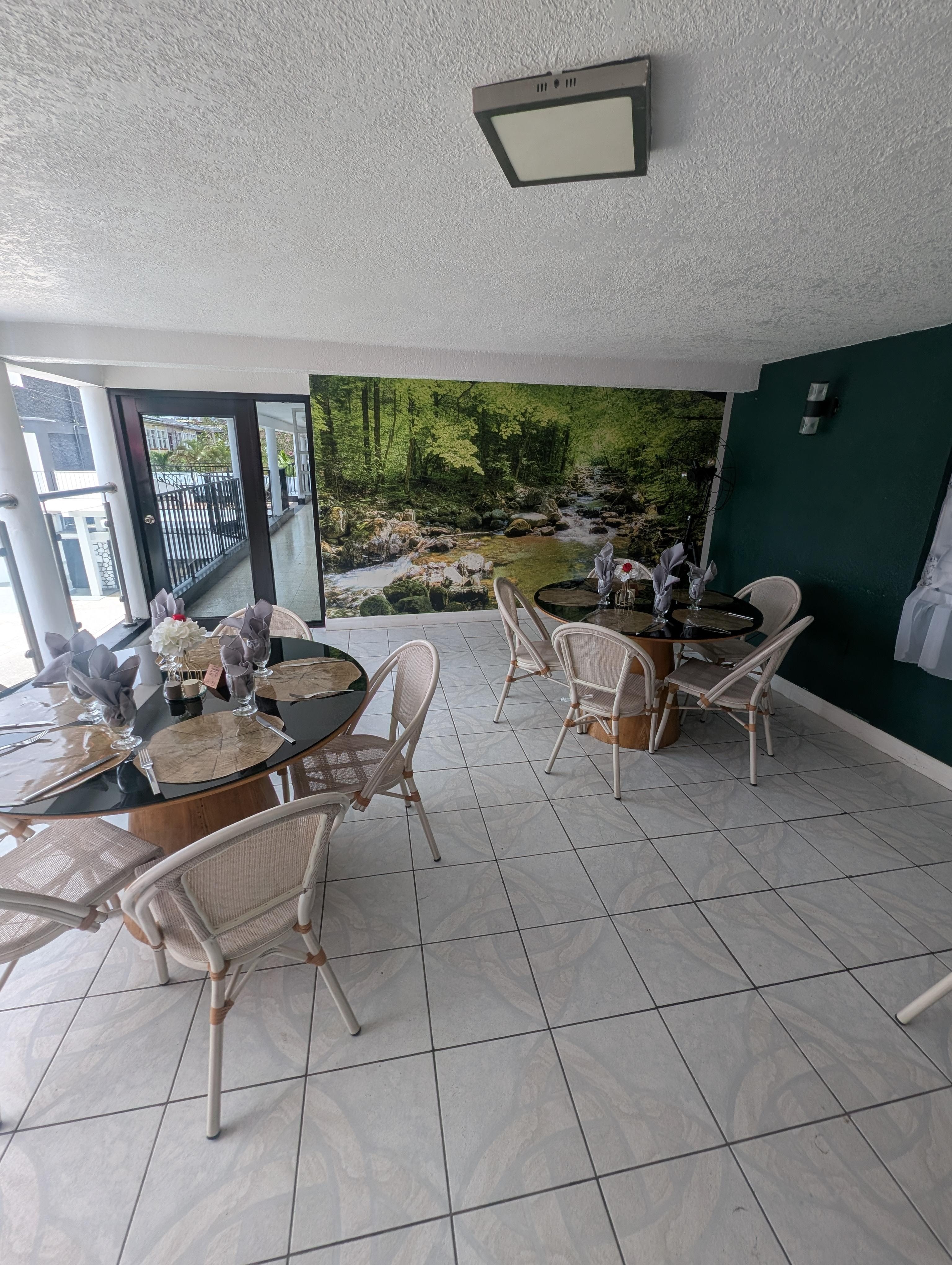No hot water in the bathroom:breakfast was very basic also the young girl who served breakfast needs to work on her customer service skills