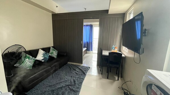The unit have everything you need from kitchen utensils, appliances to watching your favorite shows in netflix, washing you dirty clothes in our top load washing machine and a comfortable leather couch while watching your shows.