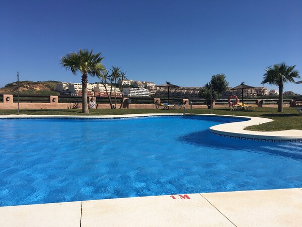 Das Coto Real Duquesa bietet 2 große Außenpools sowie 2 kleine Kinderbecken. Sie können auch im Garten entspannen.