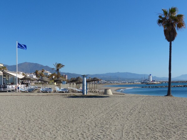 Der Flughafen Málaga liegt 95 km entfernt, man kann die Wohnung mit einem Mietwagen oder auch mit dem Bus (11 Euro bis Estepona) erreichen.