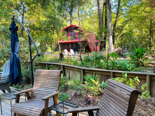 Schlaf 10 bequem mit 3 Königinbetten und einem Raum mit 4 Kojebetten. Die schöne, abgeschirmte Veranda mit Schaukeln und Schaukel ist ein gemütlicher Ort für einen Kaffee am Morgen oder wenn die Vögel ihre Darbietungen dirigieren, während Sie auf die Sonne schauen, die über das Wasser blickt. Am Abend können Sie in der Feuerstelle den Sonnenuntergang über dem Wasser beobachten, während Sie Ihr Lieblingsgetränk am Feuer genießen.