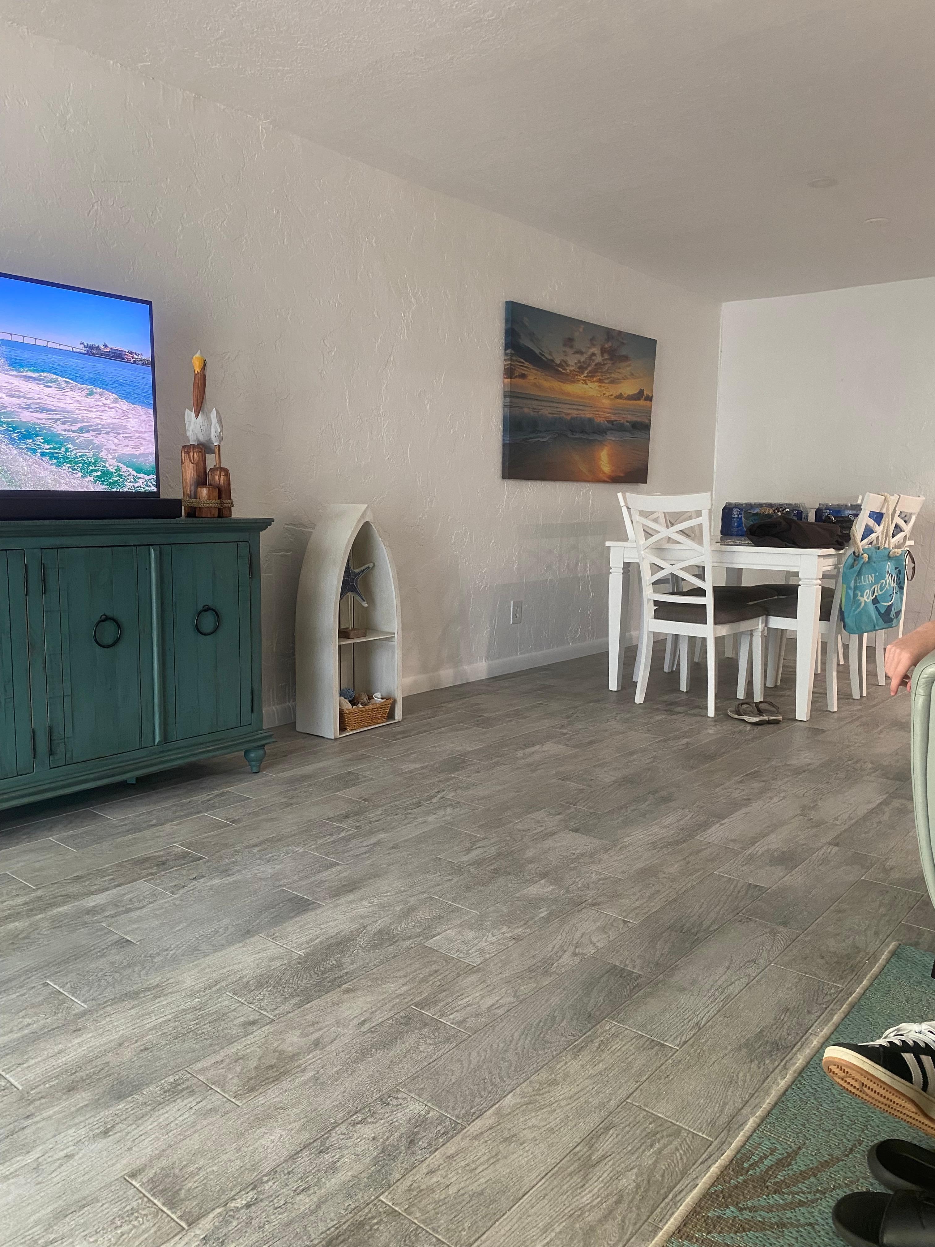 Nicely updated appliances, furniture & flooring,everything you need except kitchen tea towels! Pool was small but heated& wonderful!