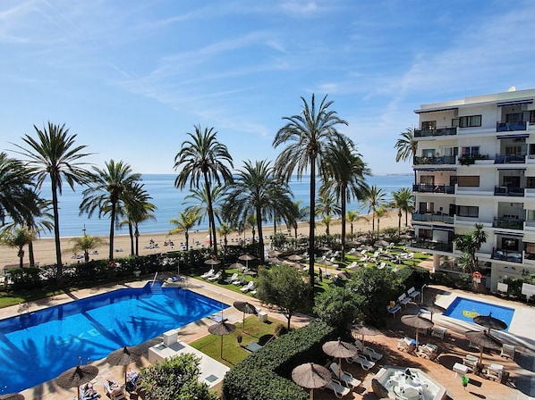 Great 1-bedroom apartment on the beachfront of Marbella centre, with amazing views over the sea and community pools, surrounded by all amenities the city has to offer, so the car is not necessary.