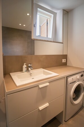In addition, the apartment is equipped with all modern conveniences, including Wi-Fi, air conditioning to ensure maximum comfort even on the hottest days, and a washing machine and dishwasher for easy and convenient management of the practical aspects of daily life.